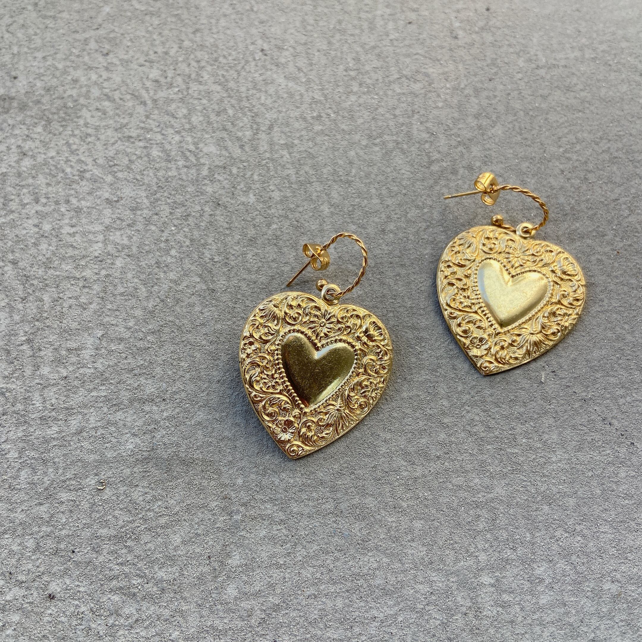 ヴィンテージライクなハートのピアス♡