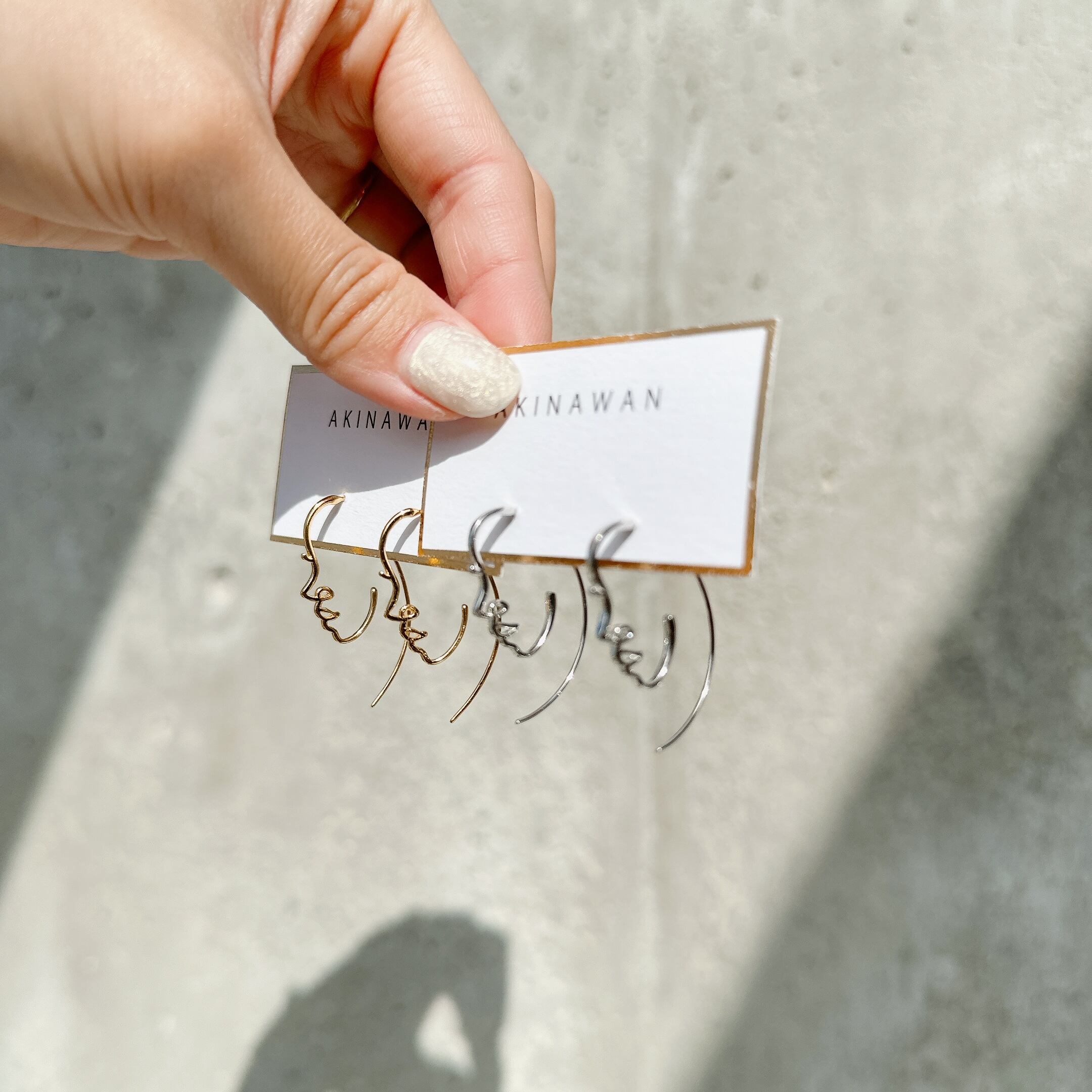 横顔を手書きで書いた様な華奢な線でデザインされたアートピアス