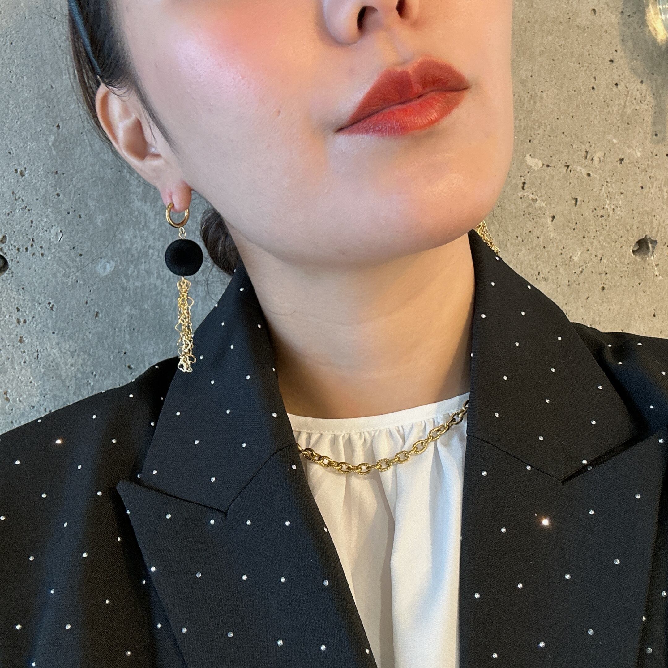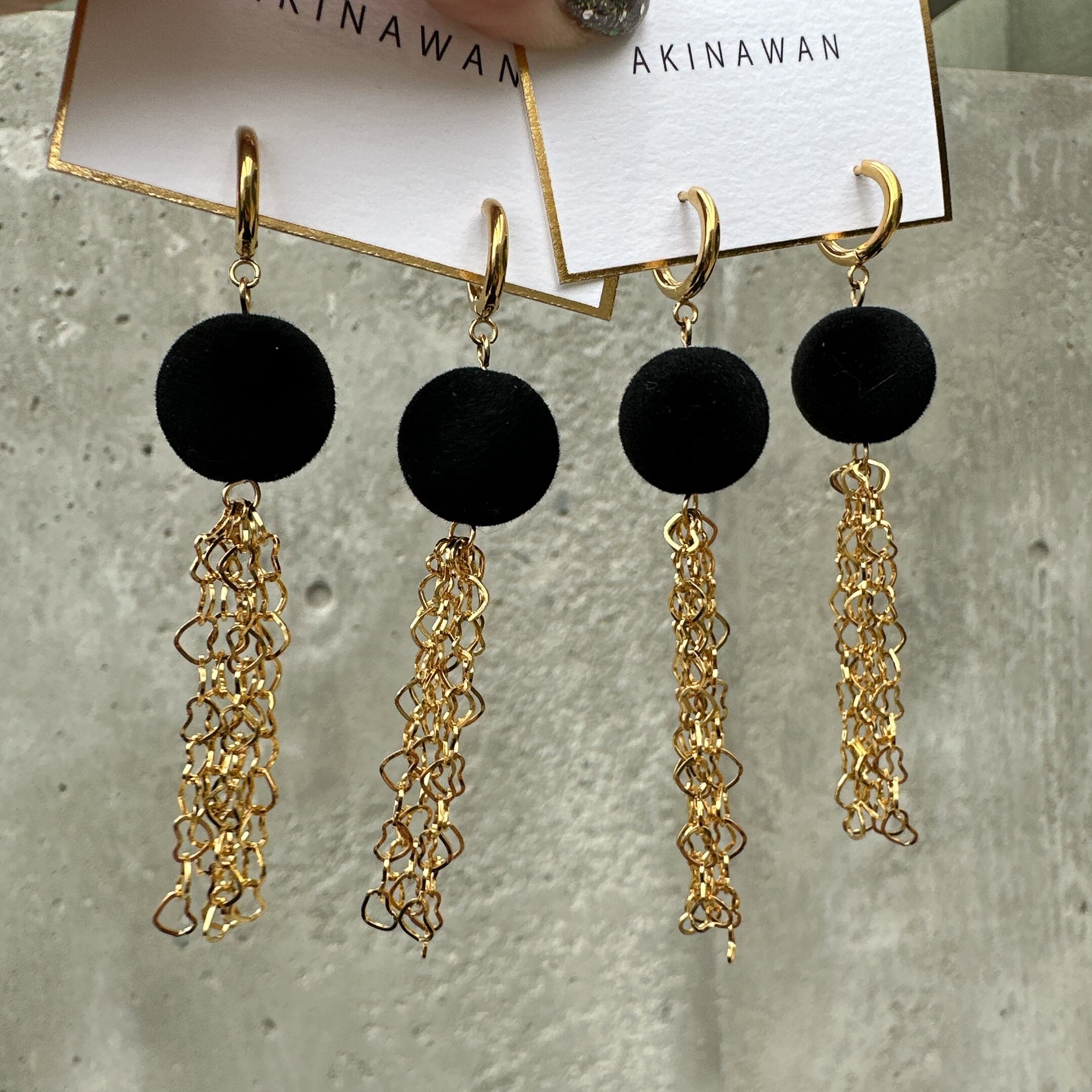 ベロアパーツにstainless製のハートチェーンをふんだんに使った高品質のタッセルが顔周りを明るく