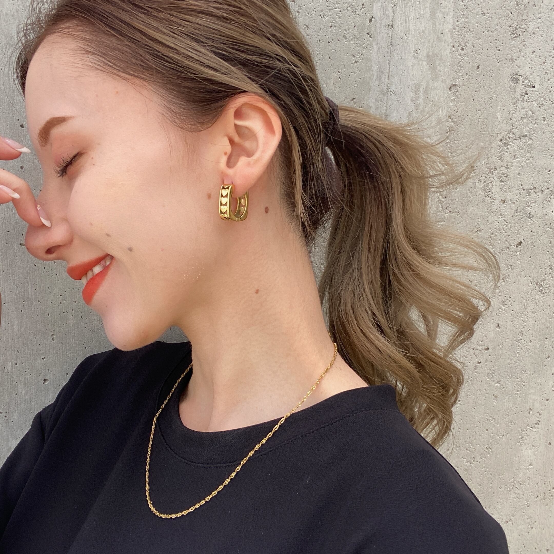 ハートが連なったフープピアス
