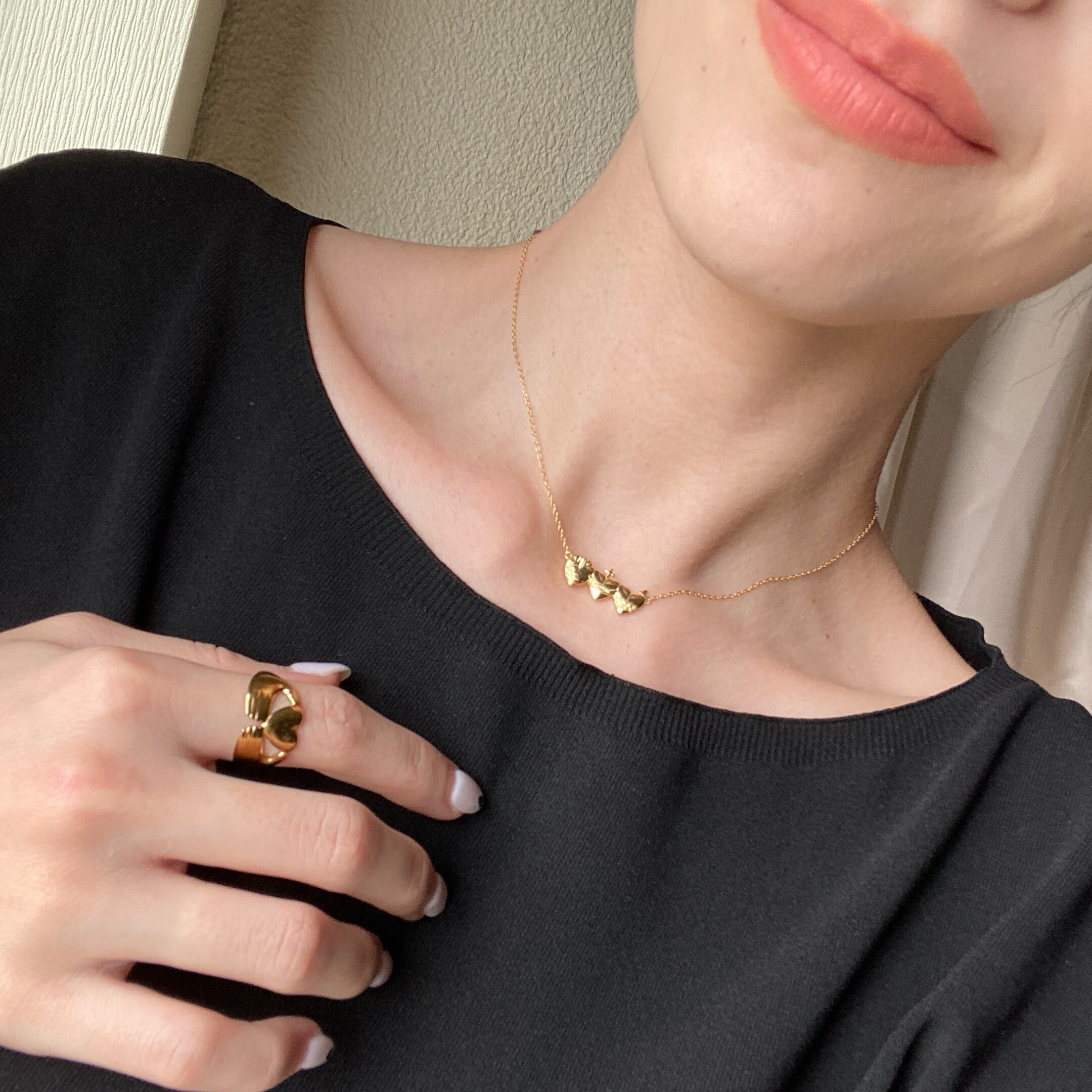 silver925 triple heart necklace